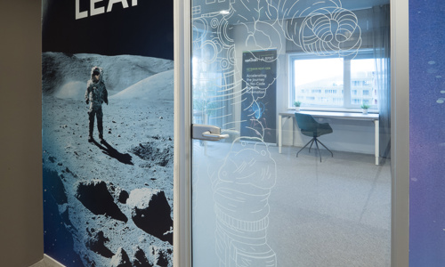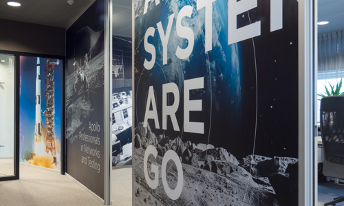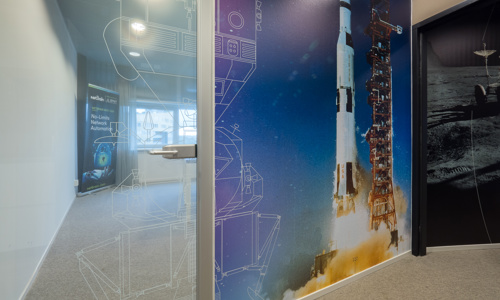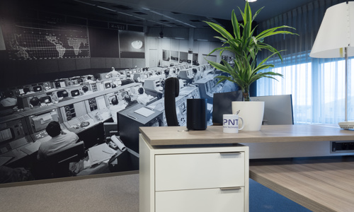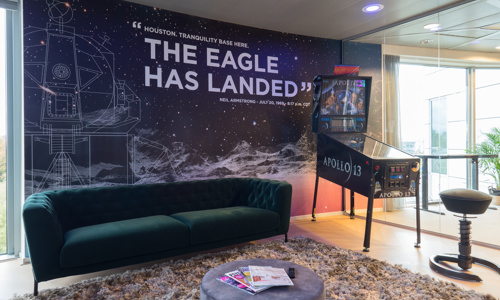 Een belangrijke visuele inspiratiebron was het Apollo-project en de maanlanding, symbolen van menselijke ambitie en doorzettingsvermogen. We hebben iconische beelden van deze historische momenten geselecteerd en deze toegepast op de muren en raamfolies. Het resultaat? Een unieke, kosmische sfeer die niet alleen esthetisch aansprekend is, maar ook de kernwaarden van APNT overbrengt.