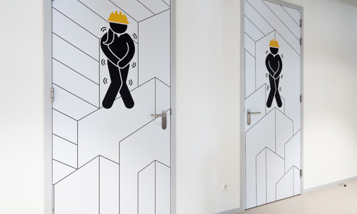 Na overleg over de verschillende concepten werd gekozen voor een licht en clean design voor de wandbekleding, in overeenstemming met de visuele identiteit van Bouwmensen. In het ontwerp is gewerkt met aansprekende beelden en met creatieve illustraties werd een intrigerend lijnenspel gecreëerd. Bijkomende eis was dat een deel van de beelden later op eenvoudige wijze gewisseld moet kunnen worden.