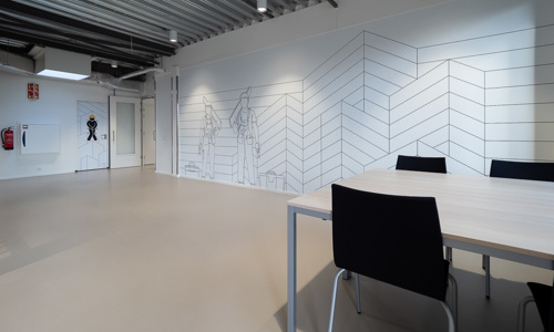 Bouwmensen wilde in het vernieuwde gebouw een uitstraling die past bij de branche en die gewaardeerd wordt door alle gebruikers van de ruimtes. Leerlingen, docenten en bezoekers moeten zich prettig voelen in een omgeving die past bij hun (toekomstige) werk en die ook laat zien dat technische beroepen een mooi perspectief bieden. JEU Interior Prints werd uitgenodigd om de visualisatie en de sfeer in het pand te vervolmaken.
