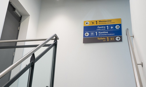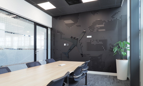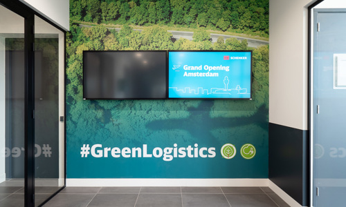 DB Schenker hecht veel waarde aan een inspirerende werkomgeving voor haar medewerkers, ook om daarmee de werkplek aantrekkelijk te maken voor nieuwe talenten. Met de aankleding wordt een plezierige werkbeleving voor de medewerkers gecreëerd. In de designs komen de herkenbare branding van DB Schenker en de thema’s logistiek, luchtvaart en duurzaamheid overal terug. Ook is er gebruik gemaakt van raamfolies, voor zowel privacy als decoratieve doeleinden.