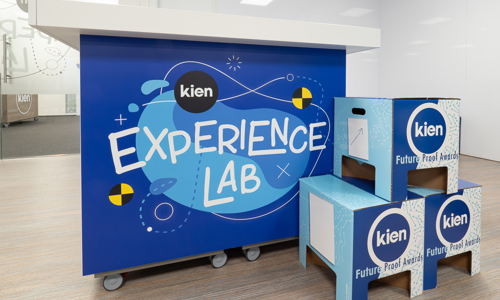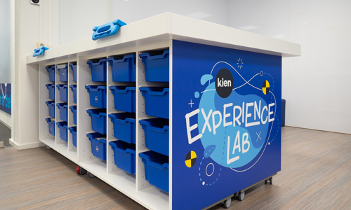 In het bedrijfspand in Dordrecht beschikt KIEN over een Experience Lab waar medewerkers op een speelse manier in aanraking komen met bijvoorbeeld programmeren en educatietechnologie. In deze ruimte worden ook bijeenkomsten en workshops georganiseerd voor medewerkers vanuit de aangesloten schoolbesturen. Ook is het mogelijk om in deze setting eigen online materiaal op te nemen zoals instructievideo’s of e-learnings.