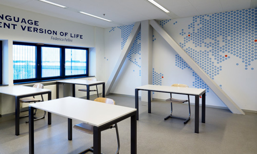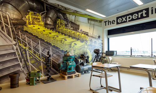 Ook de kantoor- en vergaderruimtes zijn voorzien van sfeerbeelden, die duidelijk laten zien waar het bij de STC-Group om draait. In deze omgeving voelen zowel de leerlingen als de docenten en de medewerkers zich echt op hun plek.