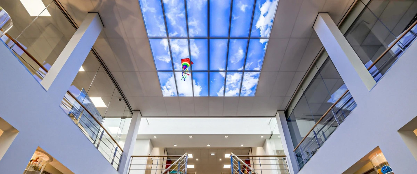 Bij JEU gaan we verder dan alleen wanden, ramen en vloeren! We bieden ook innovatieve LED-plafonds (wolkenplafonds) voor systeemplafonds aan, waarmee je een ontspannende daglichtervaring naar binnen haalt. Deze creatieve lichtoplossing zorgt voor een luchtige en open sfeer in kantoorgebouwen, wat de productiviteit van medewerkers verhoogt. In ziekenhuizen dragen onze LED-plafonds zelfs bij aan het sneller herstel van patiënten.